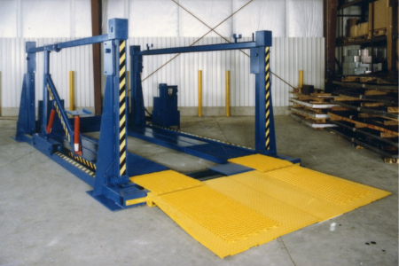 The Lift-A-Lift® truck lift is portable with removable runwaypanels and floor beams for easier access. Standard 18 inch wide runways adjust hydraulically from 56″ to 76″ on the 20,000#, 30,000#, and 40,000# service lift. The width adjustment feature accommodates a wide range of industrial vehicles.